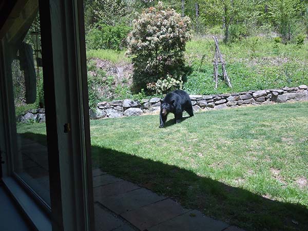 ![]() She slowly ambled down our yard and made for the bird feeder. We were about to get a very close encounter! |