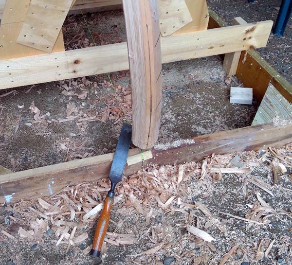 | Beveling the stems, lots of wood to be removed. A slick is your friend! Some power and block planing to finish. | ![]() |
