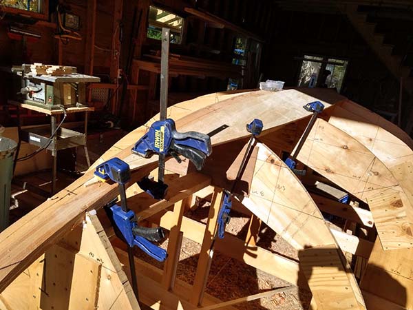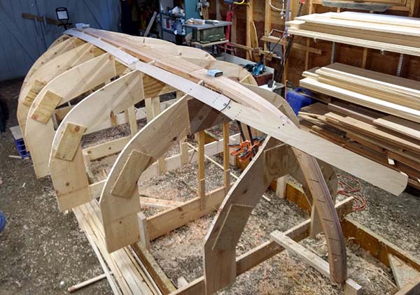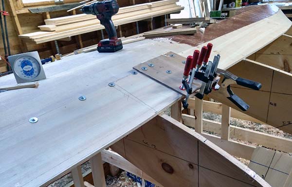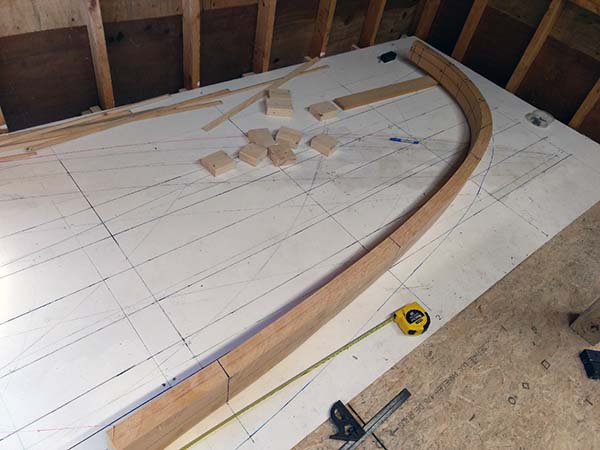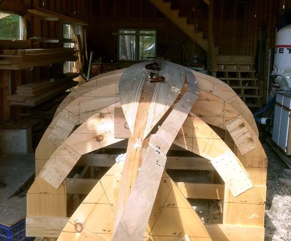 | These are some serious chunks of wood, considerably larger than what I used in my other builds. The inner keel is 2" thick, flaring from 4" to 9". | ![]() |
