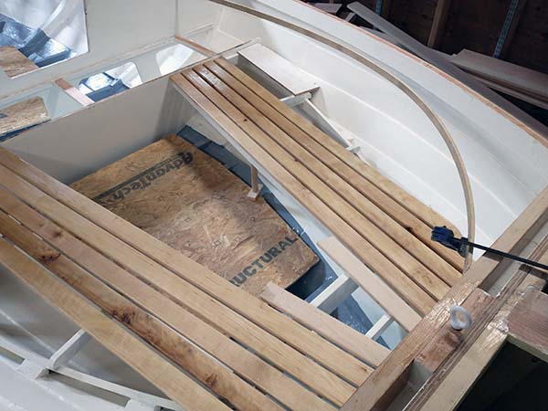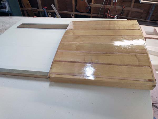 | With a cabin on this open daysailor, it now needed a sliding hatch. I discovered there are many ways to build one. After making several mock ups, this is what I built. (mouse over) | ![]() |