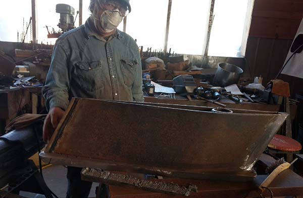| Here's something you don't see much on this side of the Atlantic, a bilge keel. It's being welded by Jeb Bush. I had him bend a curve to the inner face, the outer will be flat. The cavity will be filled with lead. He has tapered the 1" steel end plate. A top plate bent to hull camber is next and then a lot of fairing. | ![]() |