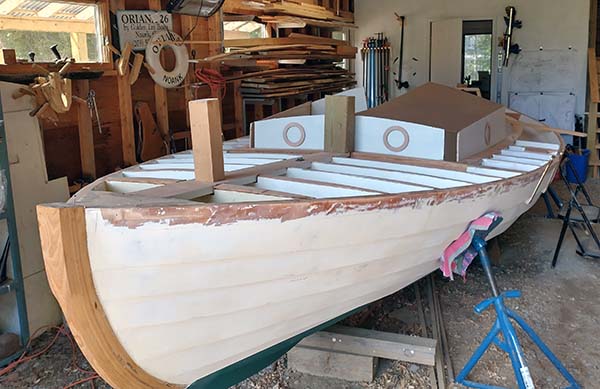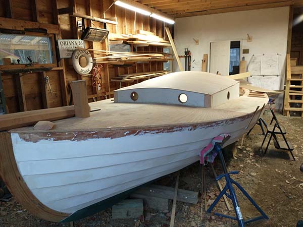 | January 2020 It is winter, work in the boat shed is limited (cold!) so I'm looking for projects to do in my heated shop. I glued up some black locust and started carving the bowsprit. Felt good to making shavings even though I won't be needing it for a while. |