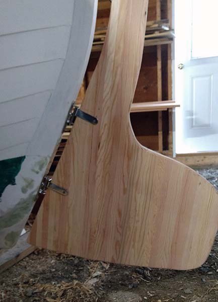 Rudder sort of in place. I can see it needs more shaping. I calculate it at 15% of the lateral area with 10% being ideal so it can be trimmed some. Won't find out for many moons how it will work.