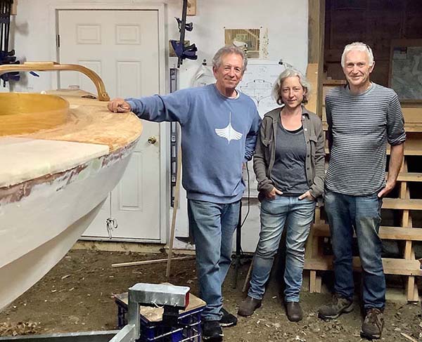 One of the reasons we moved to Blue Hill was the proximity of WoodenBoat School where I took Erica Moody's metal working class, again. She helped me make this bowsprit fitting. 4 years ago she helped with a traveler for the melonseed. Paul Gartside was also teaching a class that week and they both stopped by for boat talk and mussels. |
