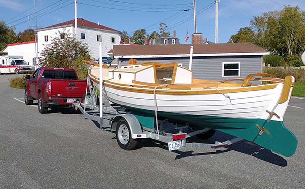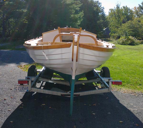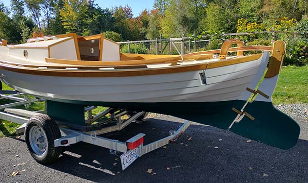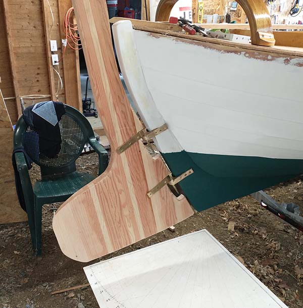 | Not very fancy but it should work. I'll find out soon enough. Had to get the tiller (ash and black walnut) to clear under the arch and stay above the coaming. |