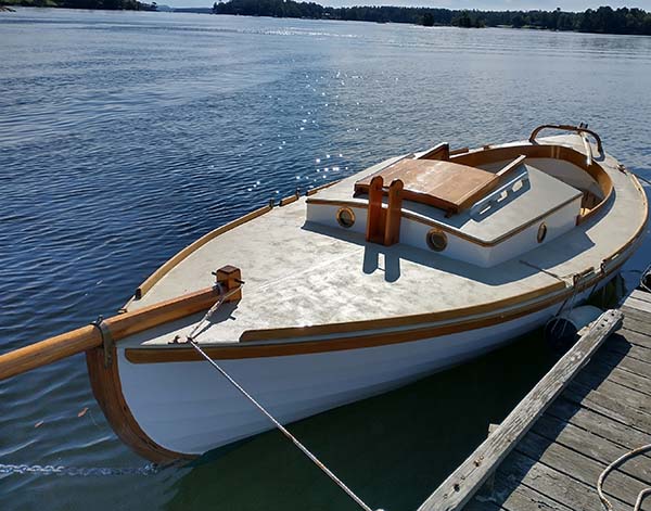 | It is a relief to see that Sojourn does have the family resemblance of the original Sjogin even though she is half the displacement and built by an amateur. |