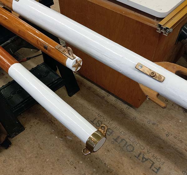 On the right is Rivus's 16' mast. It was my first birdsmouth and it's not very pretty, but it is overbuilt and held up for 7 years, so far. |
