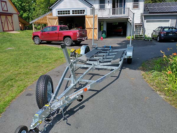 Same day as the dock, Sojourn's trailer arrived. Local companies couldn't get parts because of Covid so I ordered from Triad Trailers in NC. It appears very well built and much larger than what I've owned before. While I'm anxious to see how the boat fits I will wait a bit before getting the boat on it as it will raise the boat almost 18" making getting in and out more of challenge. |